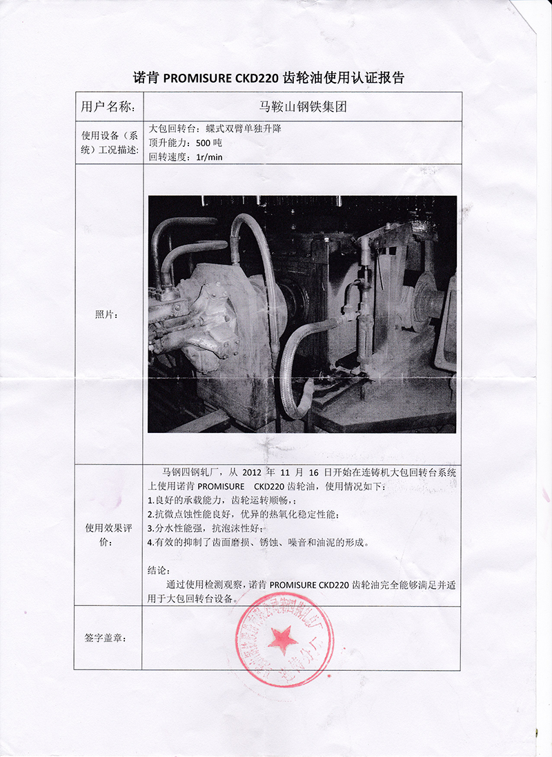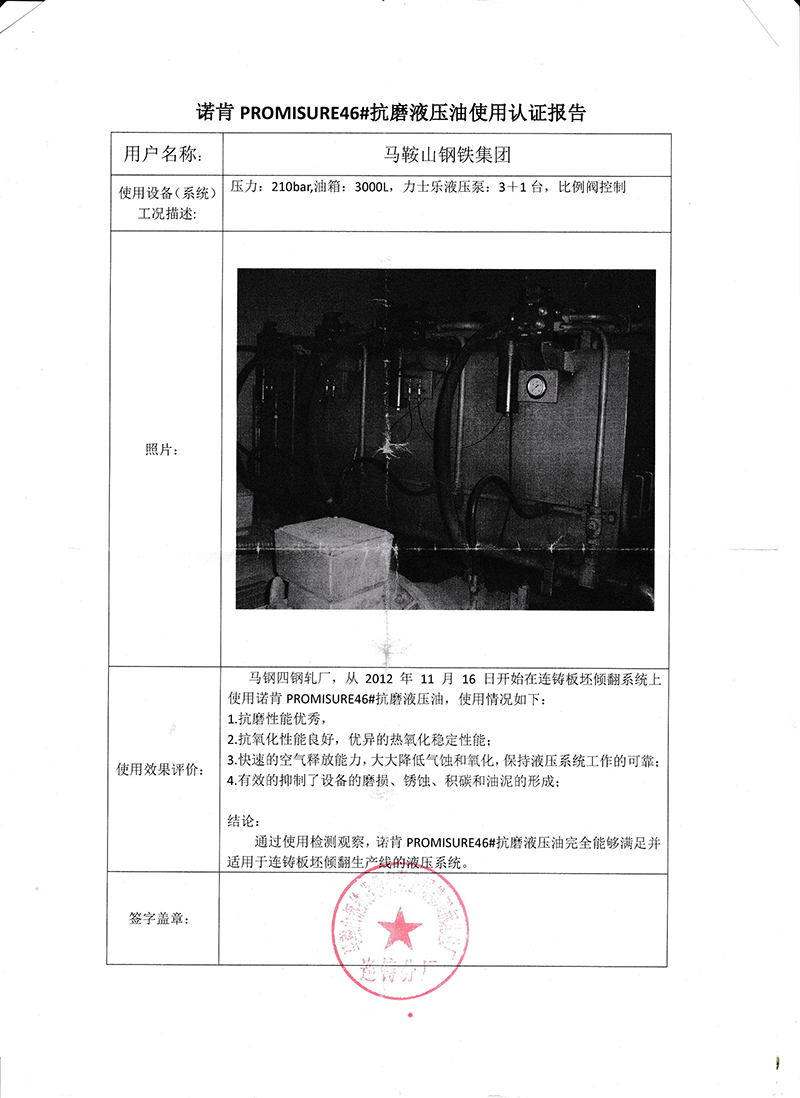 諾肯PROMISURE潤滑油在馬鋼取得成功應(yīng)用